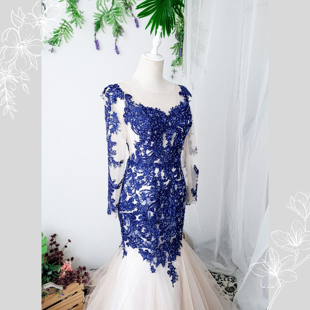 Evening Dress 711LLE01 LL Tifanny Navy Blue Illusion bodice trumpet Wedding Event Reception Dinner Dress rental Malaysia