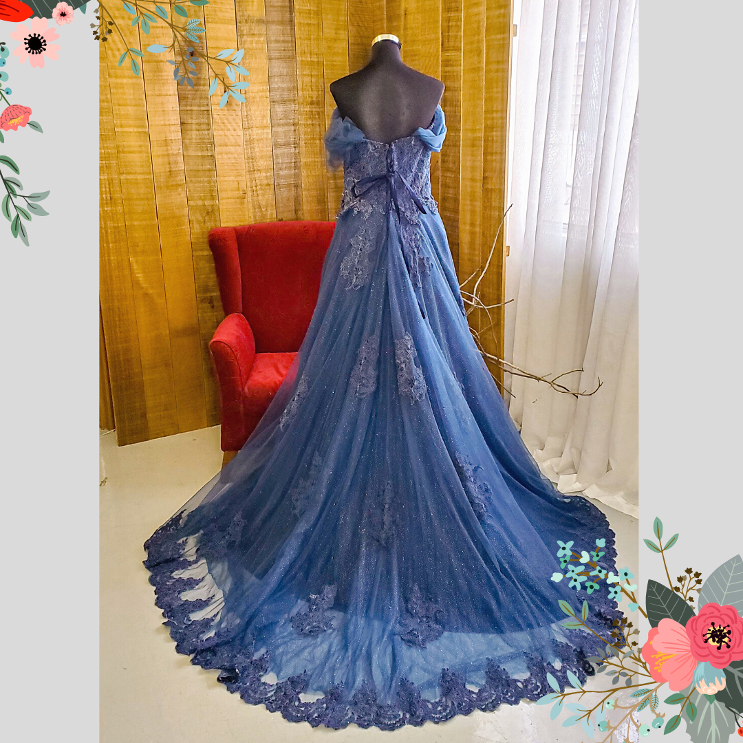 Evening Dress LZ608EL01 LZ Plus Navy Sweet Heart Alencon Lace A line Pengantin Besar Kahwin Nikah