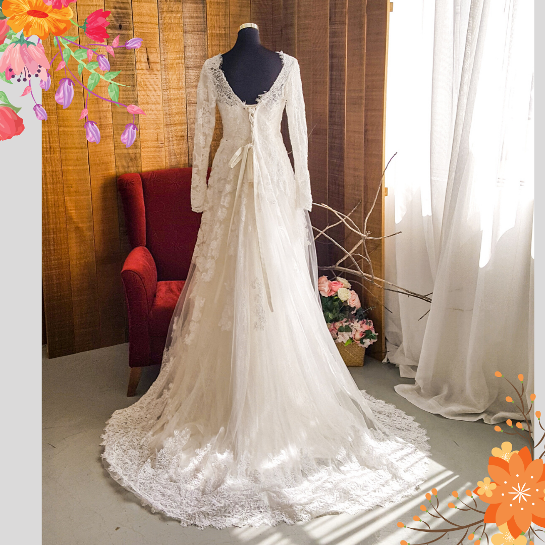 Can be teamed with a detachable long sleeves inner garment to convert it into a conservative covered back dress suitable for church wedding, muslimah wedding/majlis perkahwinan, or nikah.