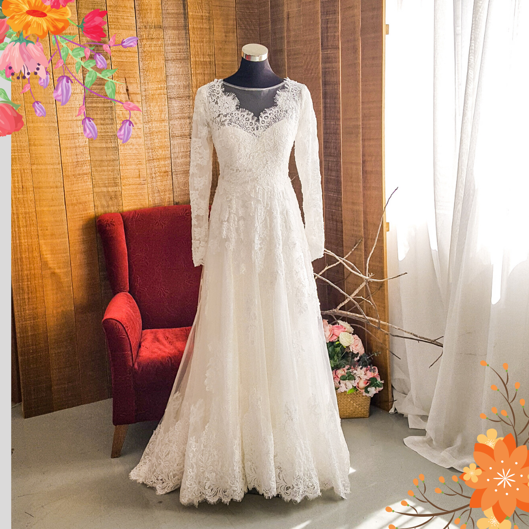 Long Sleeves designs suitable for Muslimah Bride/ Hijab Bride are available.