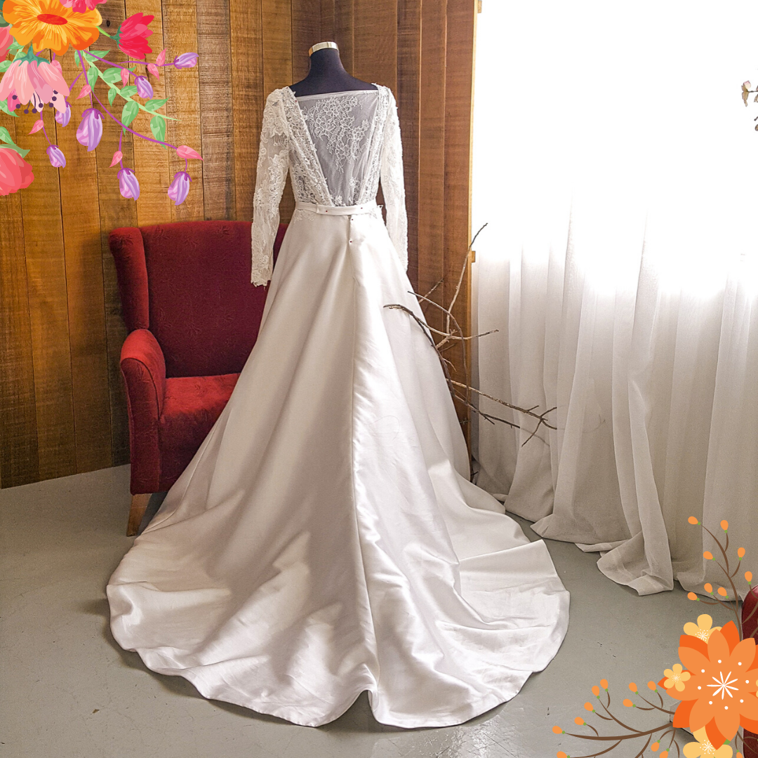 Can be teamed with a detachable long sleeves inner garment to convert it into a conservative covered back dress suitable for church wedding, muslimah wedding/majlis perkahwinan, or nikah.