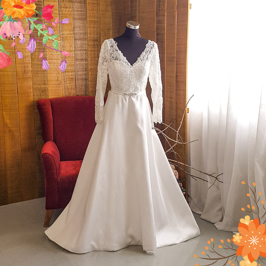 808BYWL01 Plus Latifa Cap Lace sleeves V neck A line Satin Skirt a Plus Size Bride Malaysia Dress Rental