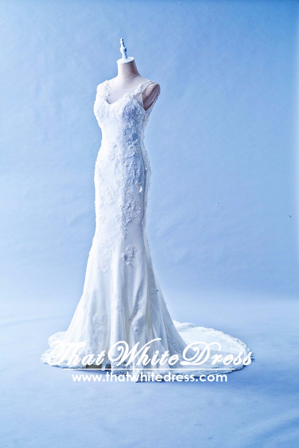 305W002 Aline Illusion Lace Cap Malaysia Wedding Dress Designer