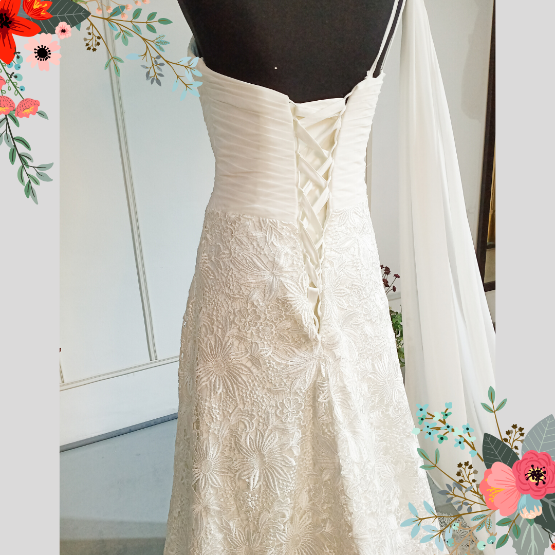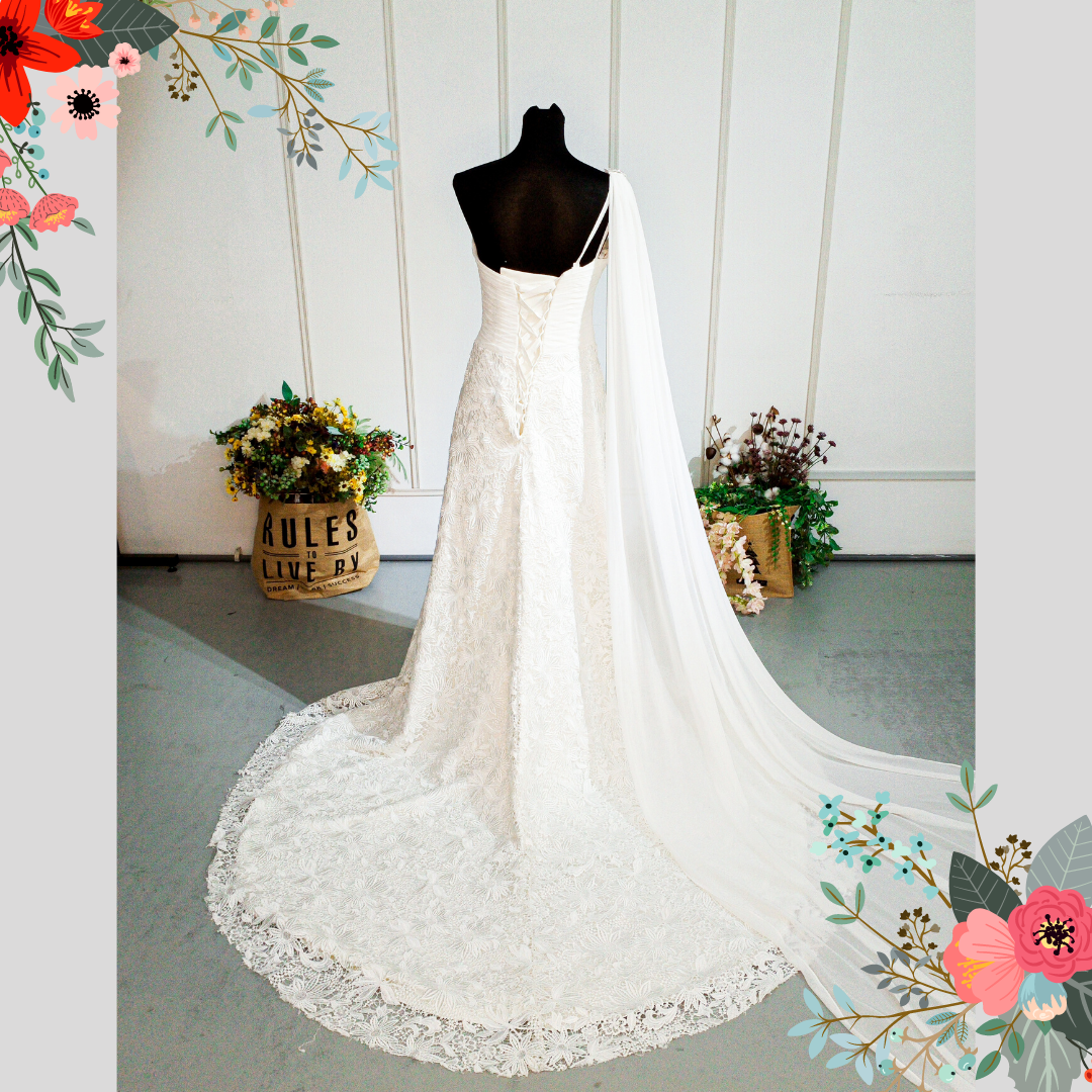 408W03 LL One Shoulder 3D French Lace Grecian a Wedding Dress Rental Malaysia