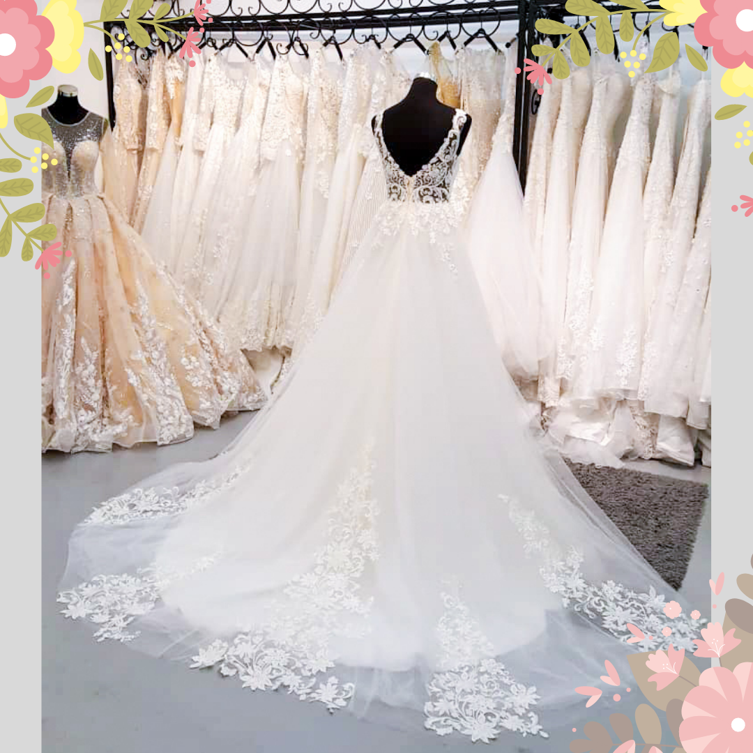 910BY05W02 Barrie Strap V illusion neck A line lace train 1 Petite Bride Malaysia, Wedding Ballgown rental Malaysia, Bridal Dress Rental Malay Kuala Lumpur Rental,