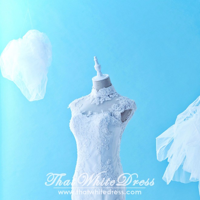 73TYW01 Oriental Collar Trumpet Ivory Wedding Dress Malaysia Rental Custom