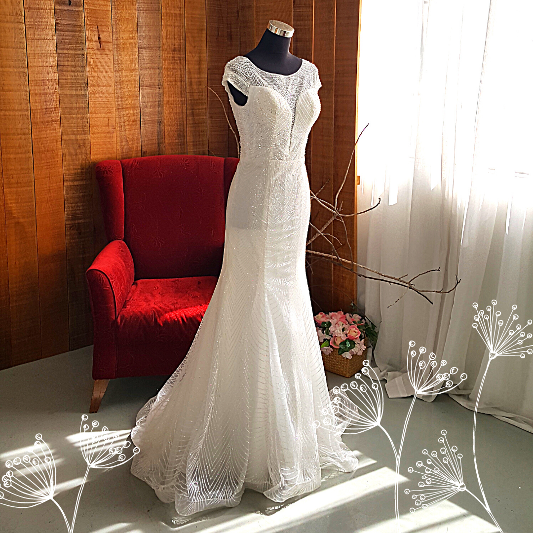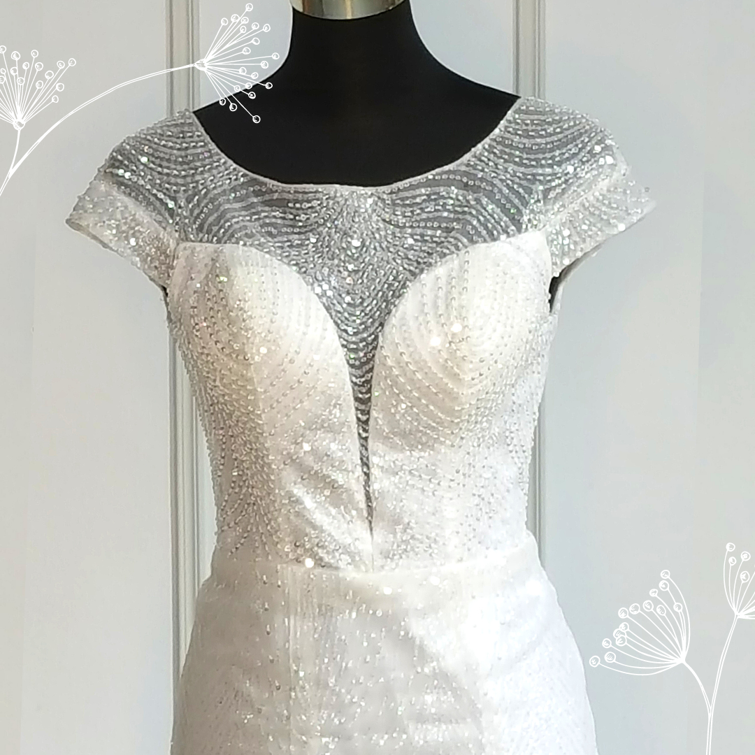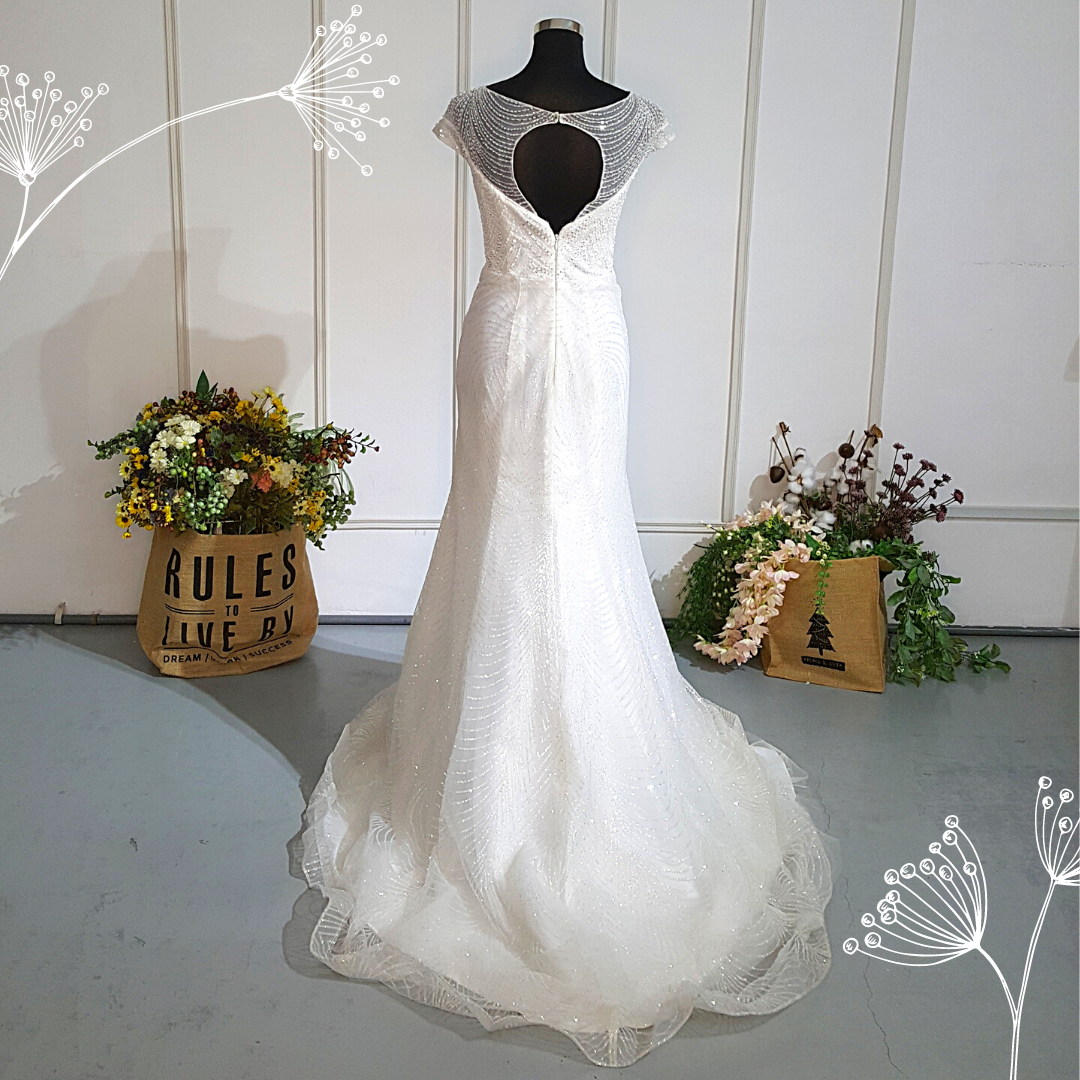 807XNW01 Chloe Boat neck illusion neckline Deep V Sparkle Trumpet a Malaysia wedding dress rental