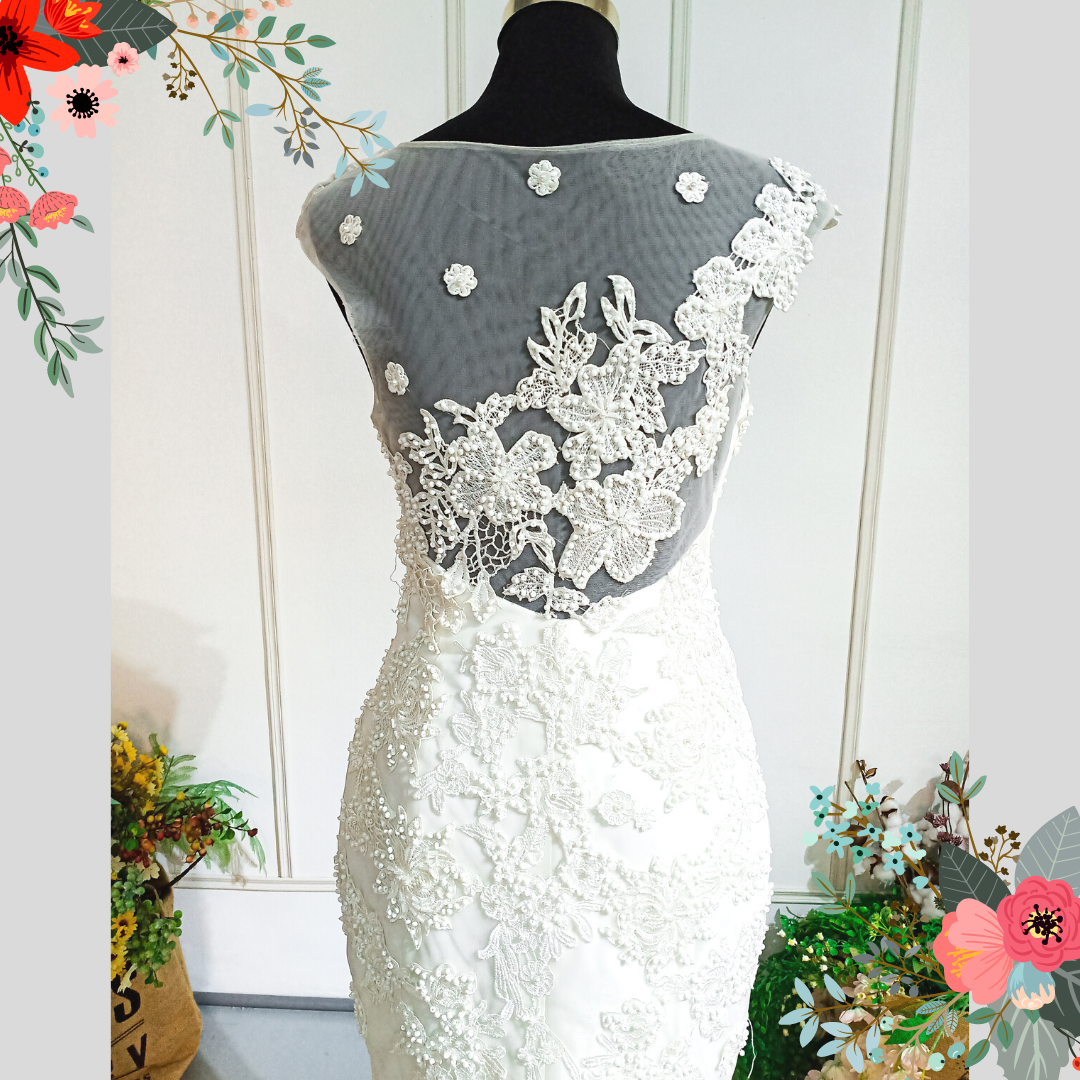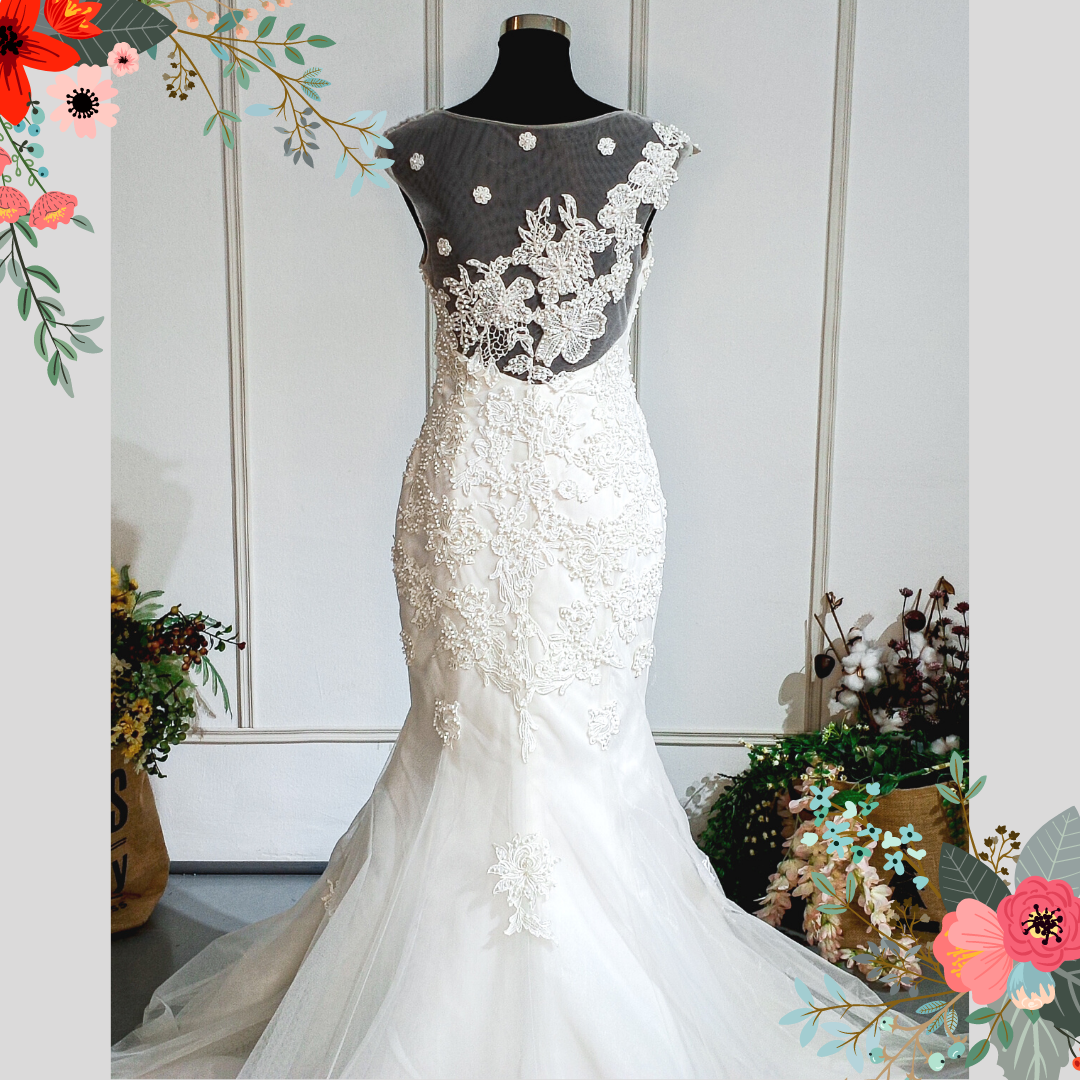 412W20 LL illusion back symmetrical lace a sexy back Malaysia Wedding Gown rental trumpet mermaid