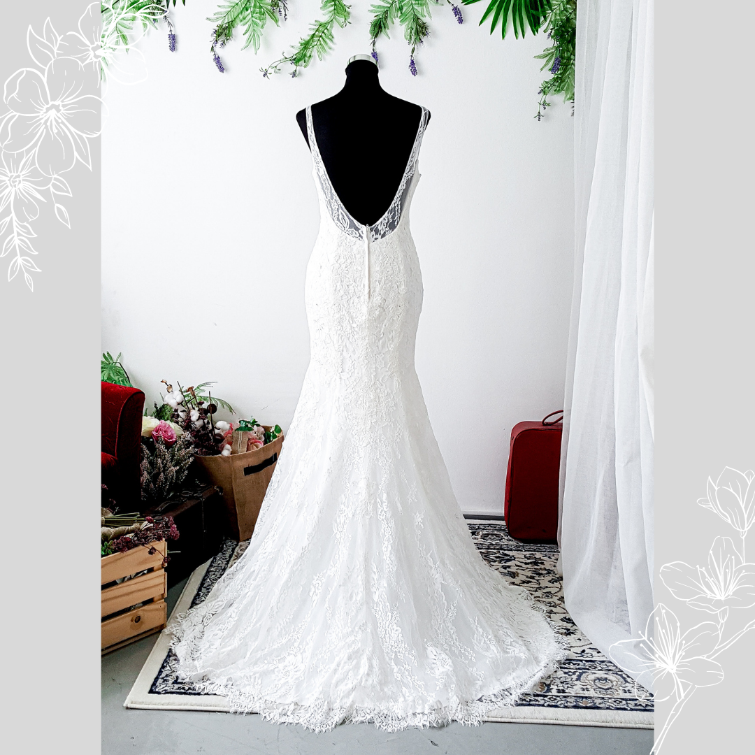 812BY03W03 Rellye Strap V neck Chantilly lace low V back trumpet Mermaid Sexy Open Back Bride wedding dress Malaysia rental designer