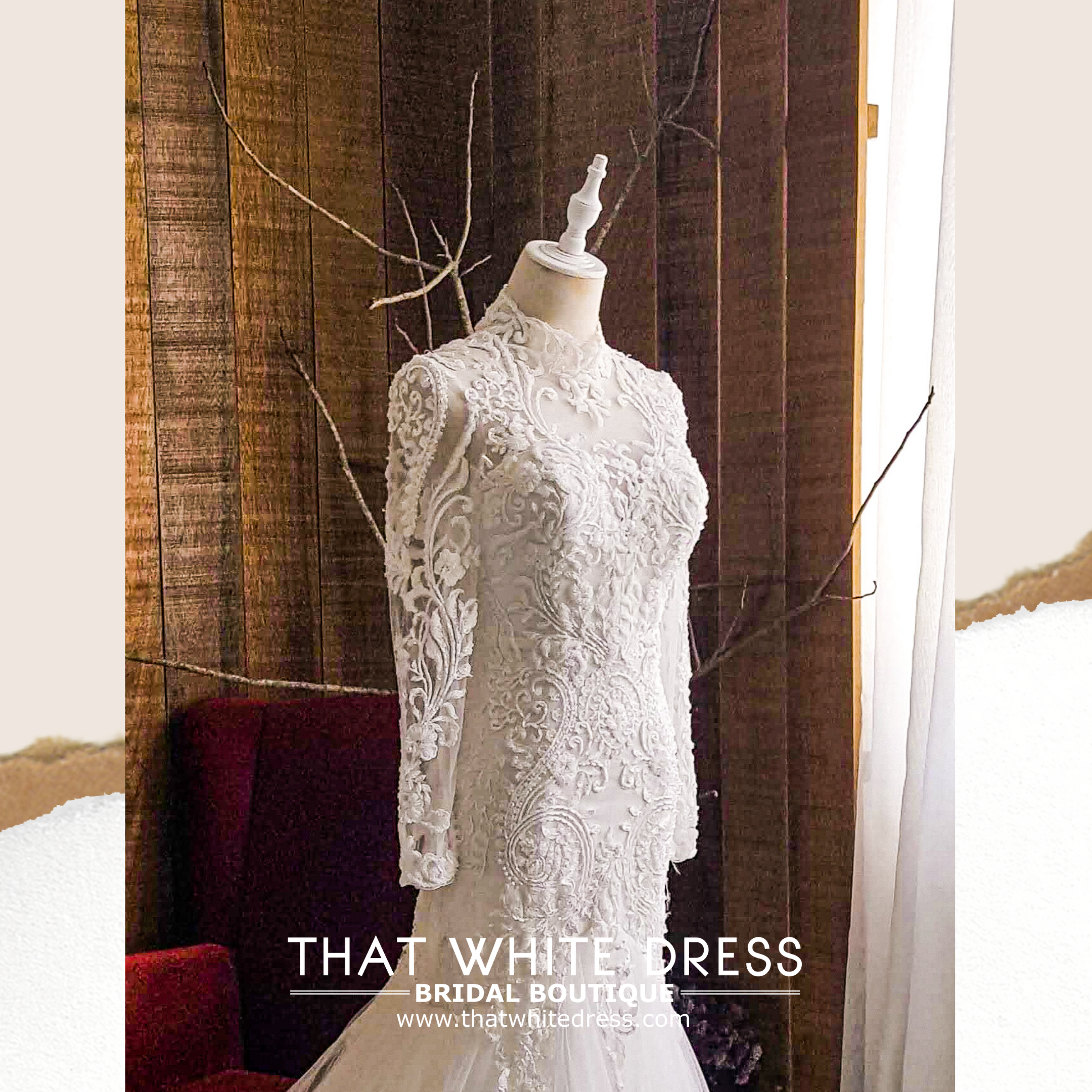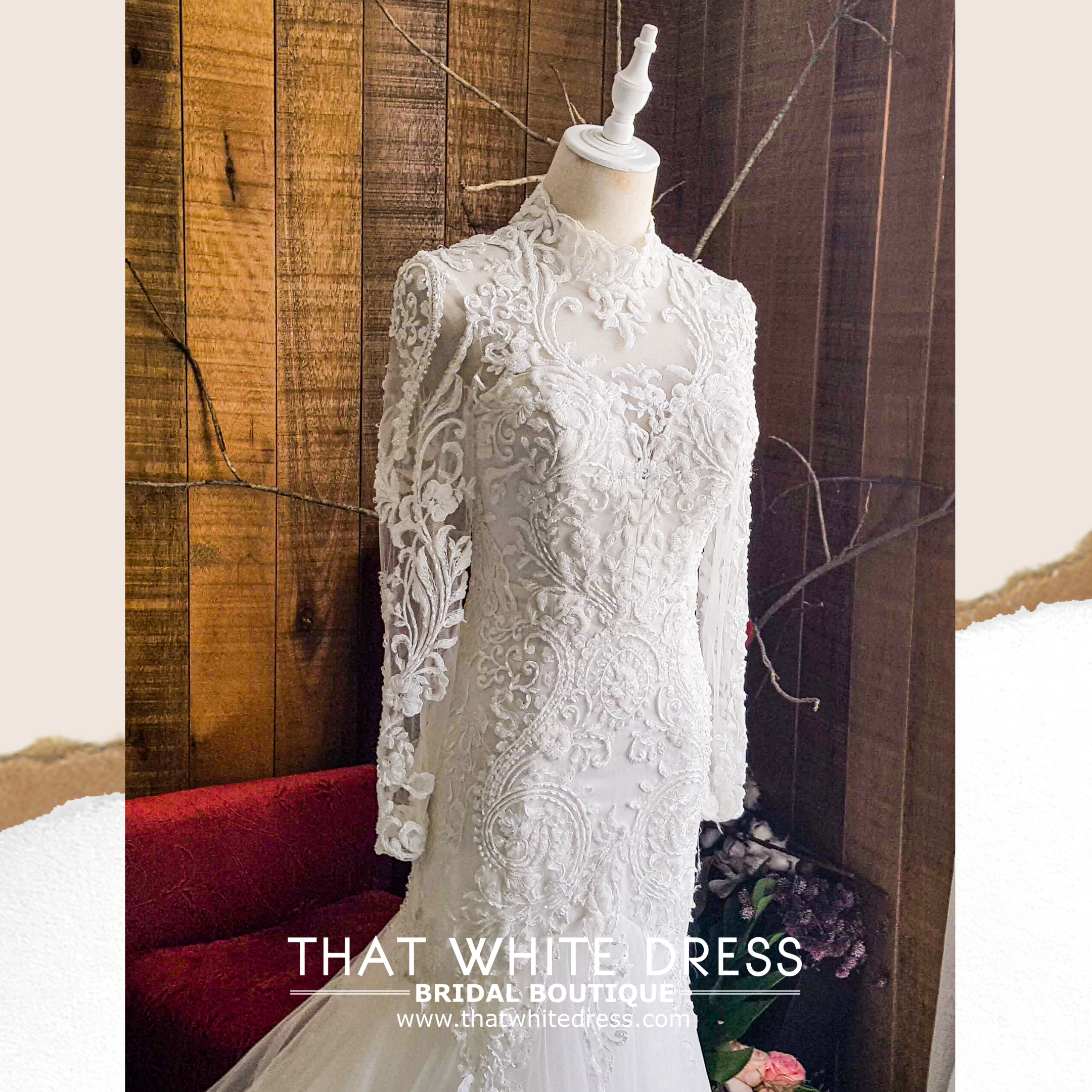 910LLW07 Darla Long Sleeves baroque lace trumpet high collar neck a  Gaun Pengantin Muslimah Malaysia sewa Kahwin Nikah button back