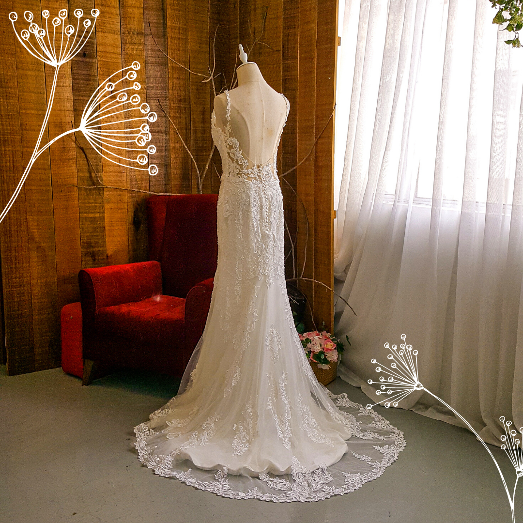 906LLW01 Chrisha Spaghetti Strap Baroque trumpet a mermaid Bride Wedding Gown Premium Designer Malaysia rental